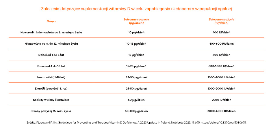 Zalecane spożycie witaminy D różni się w zależności od wieku niemowlęcego i seniorów. W pierwszym roku życia witamina D jest niezbędna do prawidłowego wzrostu i rozwoju kości, zębów i układu odpornościowego. W związku z tym rodzice muszą zapewnić swojemu dziecku wystarczającą ilość witaminy D.